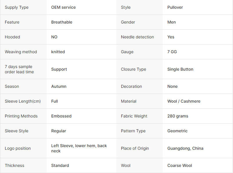 After confirming all the details of the sweater, we will start to produce samples, the production time of the samples is about 7-8 days, after the samples are completed, we will take pictures for you to confirm and then send to you via DHL/UPS, Please contact us if you need to modify the sample after receiving it.